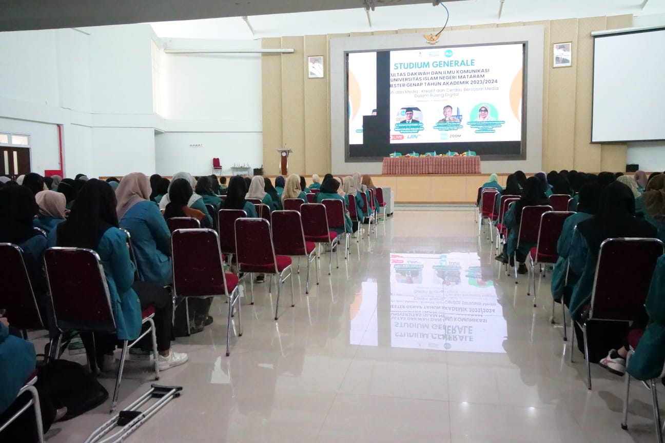 Studium General (SG) kali ini mengangkat tema Dakwah and Media: Creativity and Smart in Using Social Media in the Digital Space. Tema ini sebagai suatu respon bahwa dakwah dan media sebagai diskursus akademik yang saling melengkapi. Kegiatan ini dilaksanakan gedung Auditorium UIN Mataram yang berkapasitas 1500 orang. Hadir saat itu, seluruh pimpinan UIN Mataram mulai dari Rektor yang diwakili Rektor 3 Prof. Dr. H. Subhan Abdullah, Lc., MA., Dekan Dakwah dan Ilmu Komunikasi (FDIK), Wakil Dekan 1,2,3, Direktur Pascasarjana, seluruh dosen dan mahasiswa FDIK UIN Mataram.