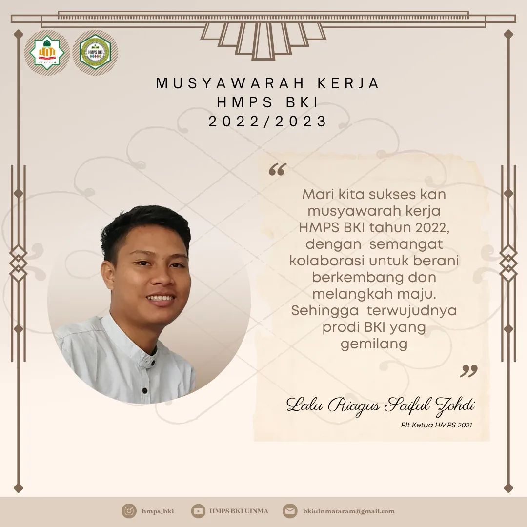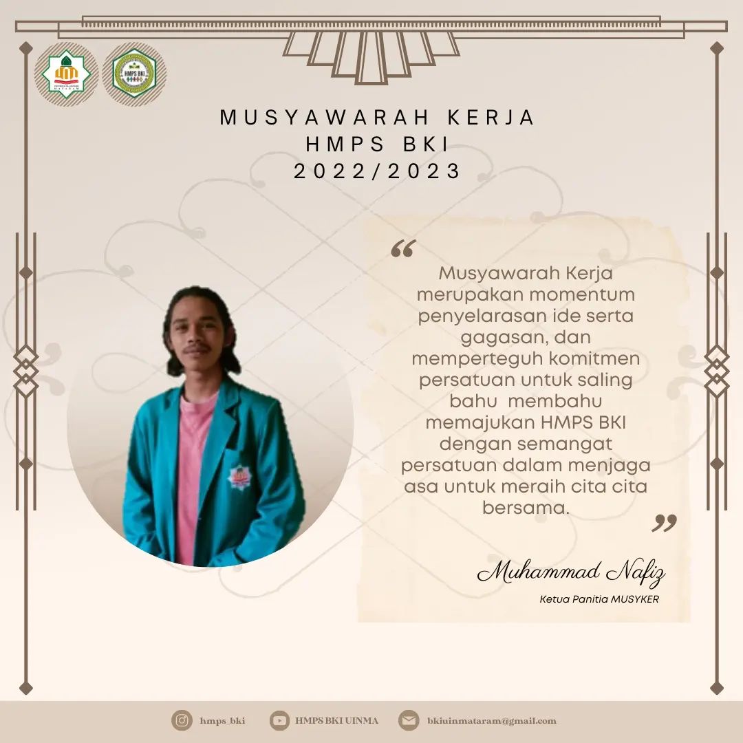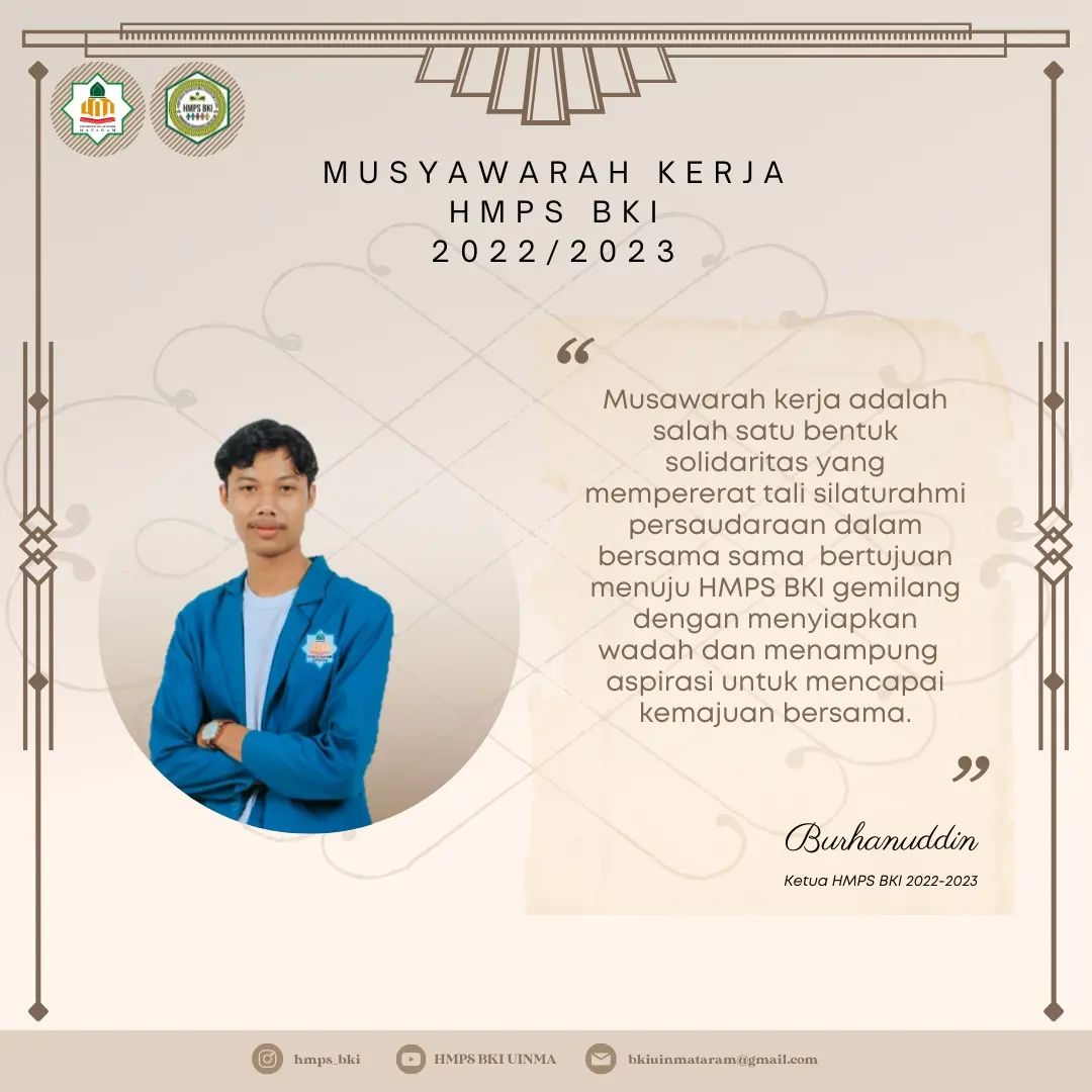 Dalam semangat kebersamaan dan cita-cita yang tinggi, Himpunan Mahasiswa Program Studi Bimbingan Konseling Islam (HMPS BKI) menggelar Musyawarah Kerja (Musyker) untuk merumuskan langkah-langkah strategis dalam mewujudkan tujuan bersama. Acara tersebut diadakan pada tanggal 21 Februari 2022 di Ruang Meeting Perpustakaan lantai 2 Kampus II UIN Mataram, dan dihadiri oleh para pengurus HMPS Islam serta seluruh anggota aktif.