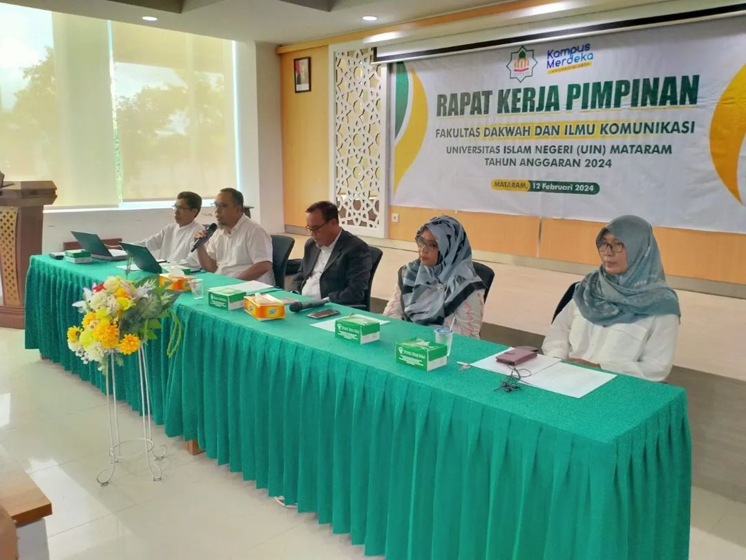 Rapat Kerja FDIK UIN Mataram 12 Februari 2024 Menghadirkan SPI UIN Mataram dan melibatkan semua unsur pimpinan di FDIK, mulai dari para Dekanat, Kabag dan Kasubag Akademik, Kajur Sekjur, Gugus Kendali Mutu dan Pengelola Jurnal di lingkungan FDIK. Kegiatan ini mengusung tema: “Membangun Komitmen Kinerja Berbasis Futuristik dan Akreditasi Unggul”